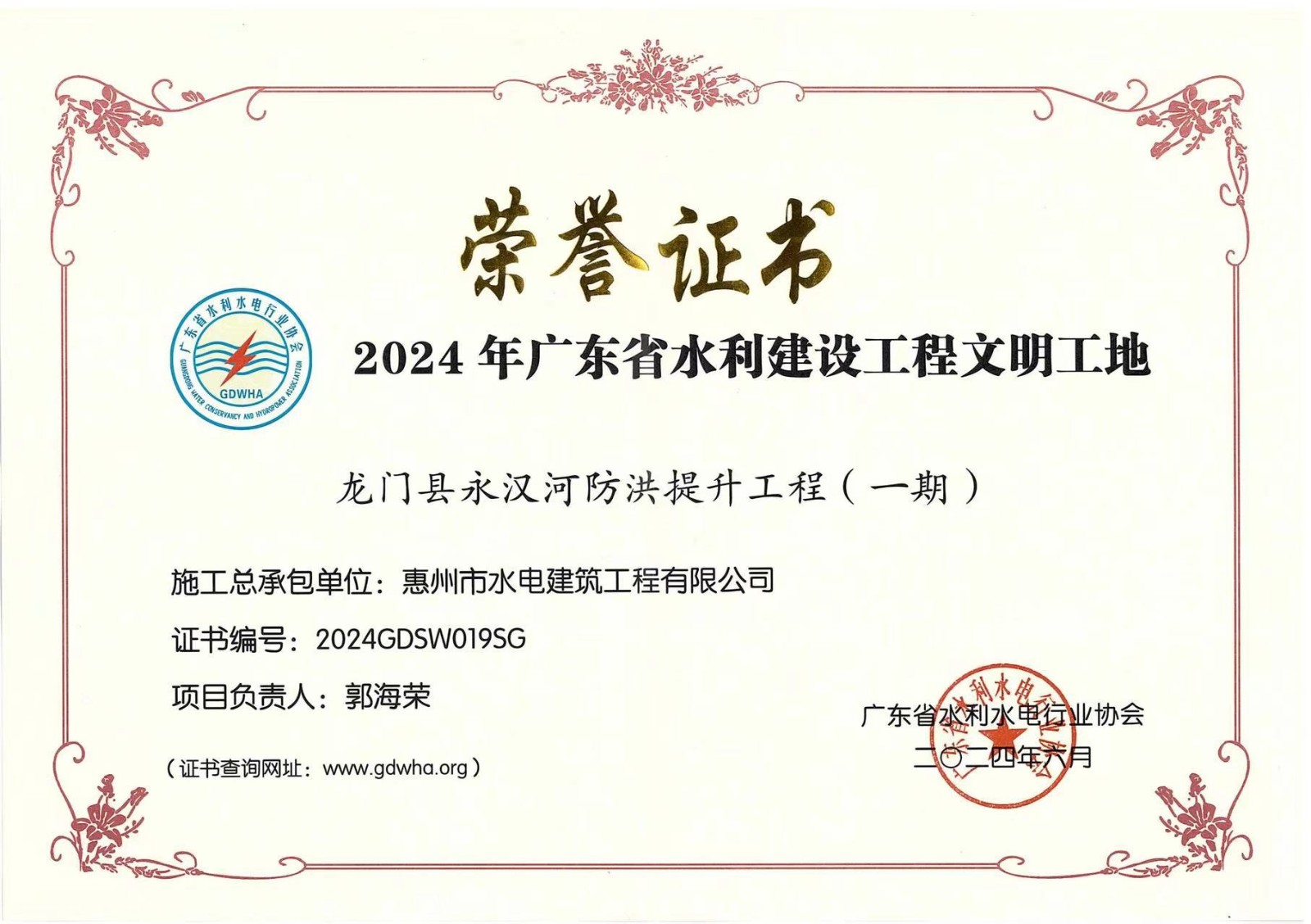 惠州市水電建筑工程有限公司成立于一九六四年四月,隸屬惠州市水務(wù)集團(tuán)有限公司,是一家國有綜合性施工企業(yè),主營水利水電工程、房屋建筑、市政工程等施工業(yè)務(wù)。公司擁有水利水電工程施工總承包一級、建筑工程施工總承包一級、市政公用工程施工總承包一級、公路工程施工總承包三級,公路路基、路面及建筑裝修裝飾專業(yè)承包二級,環(huán)保工程、機電安裝、河湖整治、輸變電工程專業(yè)承包三級等經(jīng)營資質(zhì)……