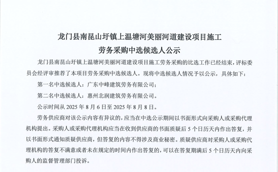 惠州市水電建筑工程有限公司勞務(wù)供應(yīng)商庫擴庫評審結(jié)果公示……